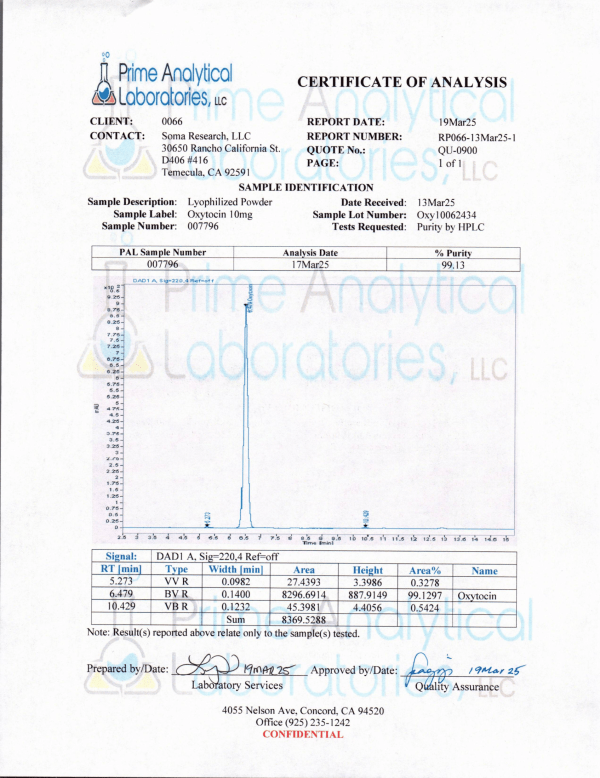 Oxytocin is a subject of ongoing research in areas such as emotional regulation, social cognition, stress response, and neurodevelopment. Studies continue to explore its potential involvement in behavioral and physiological pathways, including bonding, mood regulation, and immune modulation.